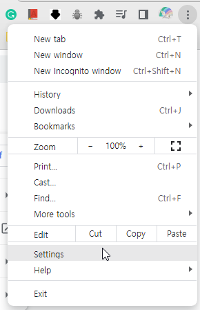 3. Chrome 우측 상단에 더보기 버튼 > Setting에 들어간다