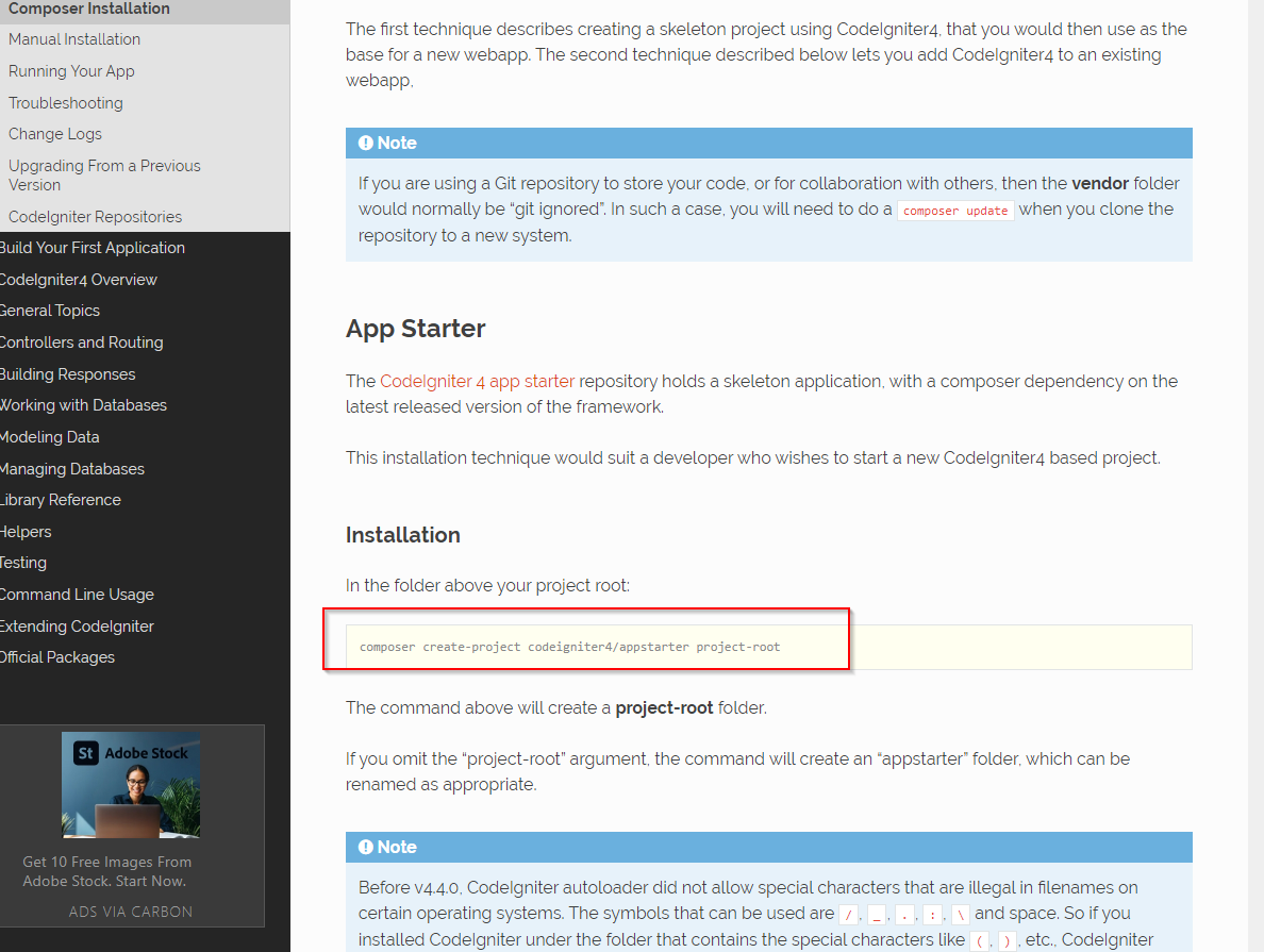 $ composer create-project codeigniter4/appstarter ciapp
