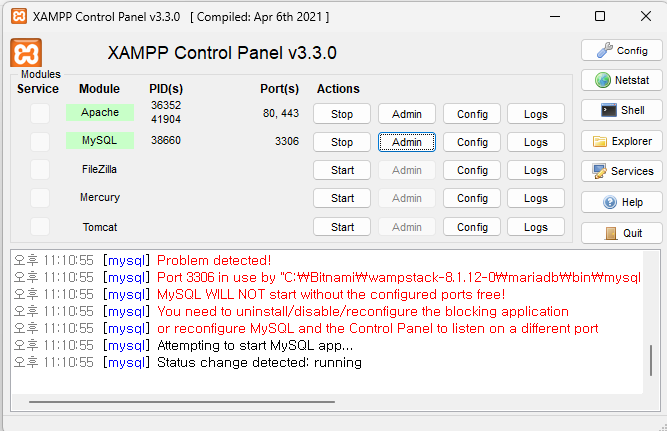설치하면, XAMPP Control Panel을 사용할 수 있다.