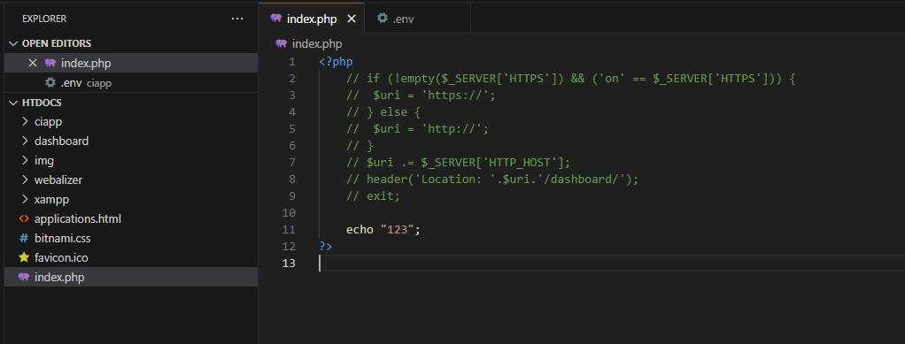 URL 입력창에 localhost:80를 넣으면, index.php 파일에 설정된 내용이 화면에 나온다.