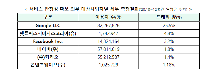 1. 주요 부가통신서비스의 안정성 확보를 위한 2021년 의무 대상자 지정(출처 : 과학기술정보통신부)