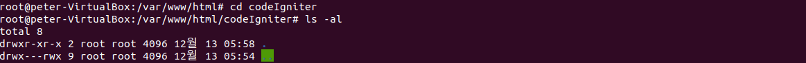 /var/www/html 위치에 다른 작업 내용과 구분하기 위해 codeIgniter라는 디렉토리를 생성했습니다.